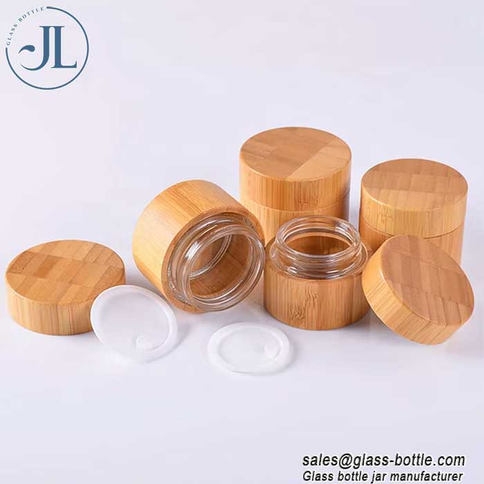 Material Super White Glass Color Clear, amber,black ,white or as your requirements Application Face Cream, Eye cream, skincare products Delivery time 25~30days MOQ 5000 sample free, freight collect Decoration Options frosting, printing, hot stamping, silk screen printing Name: Cosmetics Packaging Containers Volume: 50ml Cap: bamboo lid This kind jar is very premium, which will also make your skincare products looks luxury and sales well in market, JL Glass as a premium glass jar factory, …