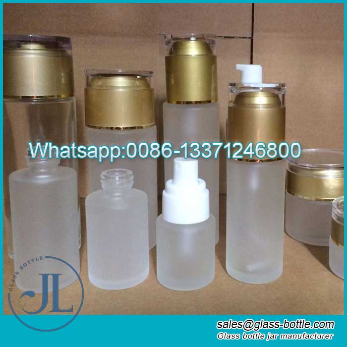 60ml/80ml/100ml/120ml frosted glass cosmetic lotion bottles with pump and cap