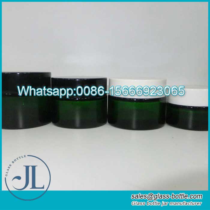 green coloured glass cosmetic jars with black cap