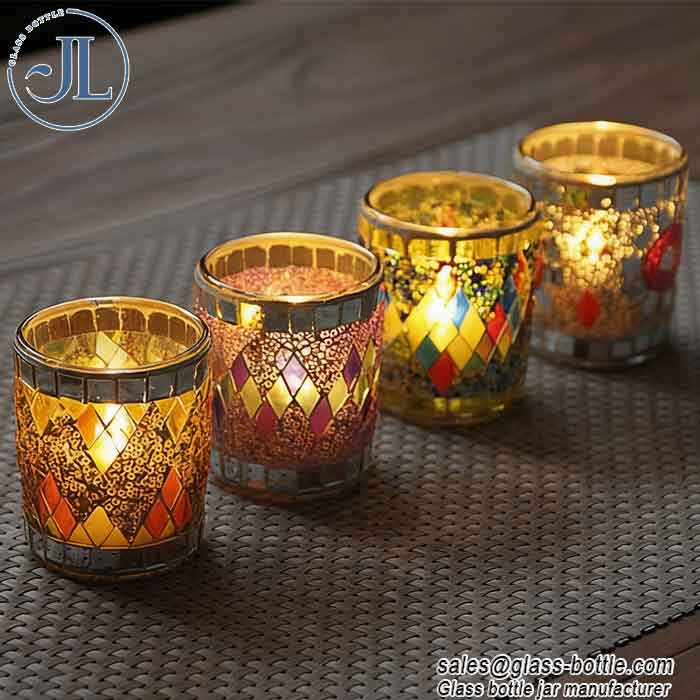 Name: Mosaic glass candle jar Height*Diameter: diameter 52mm*height 62mm Material: Supper flint ( Crytal material glass ) Cap: Bamboo lid/ metal lid Surface: Deco/hot stamping/silk printing/labeling… customized Packing: Carton then pallet Certificate: ISO 9001 MOQ: 1,000 pcs Samples: Free Main Features: The weighted base prevents it not breaking or cracking with the presence of high temperatures. The bamboo/metal lids give a distinct look to your candle making. Includes …